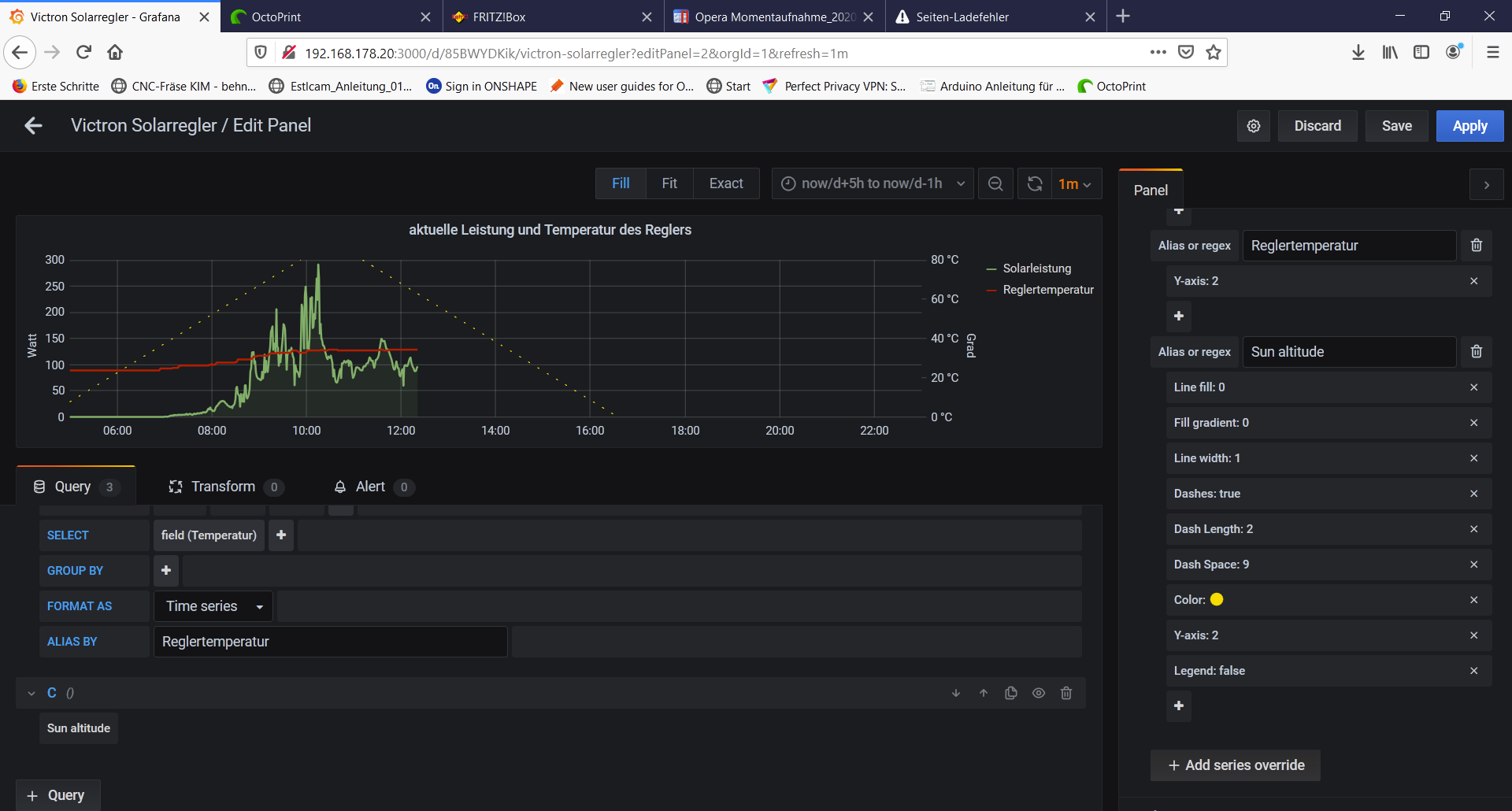 Ich melde mich wie beschrieben im Grafana Dashboard an und rufe edit bei aktuelle ...