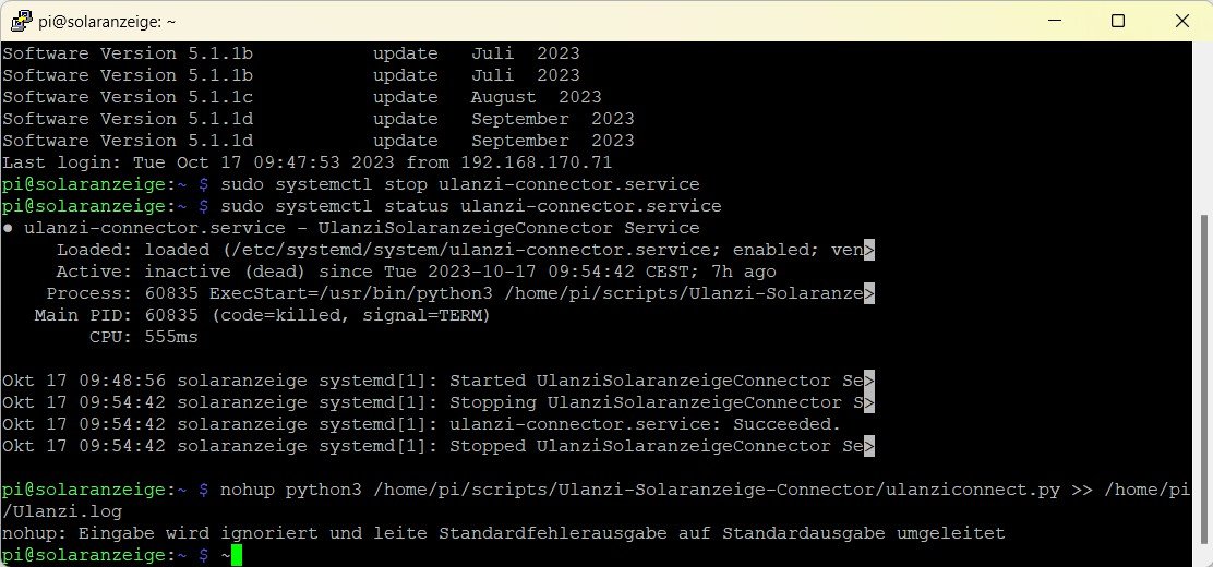 python3 /home/pi/scripts/Ulanzi-Solaranzeige-Connector/ulanziconnect.py >> /home/pi/Ulanzi.log