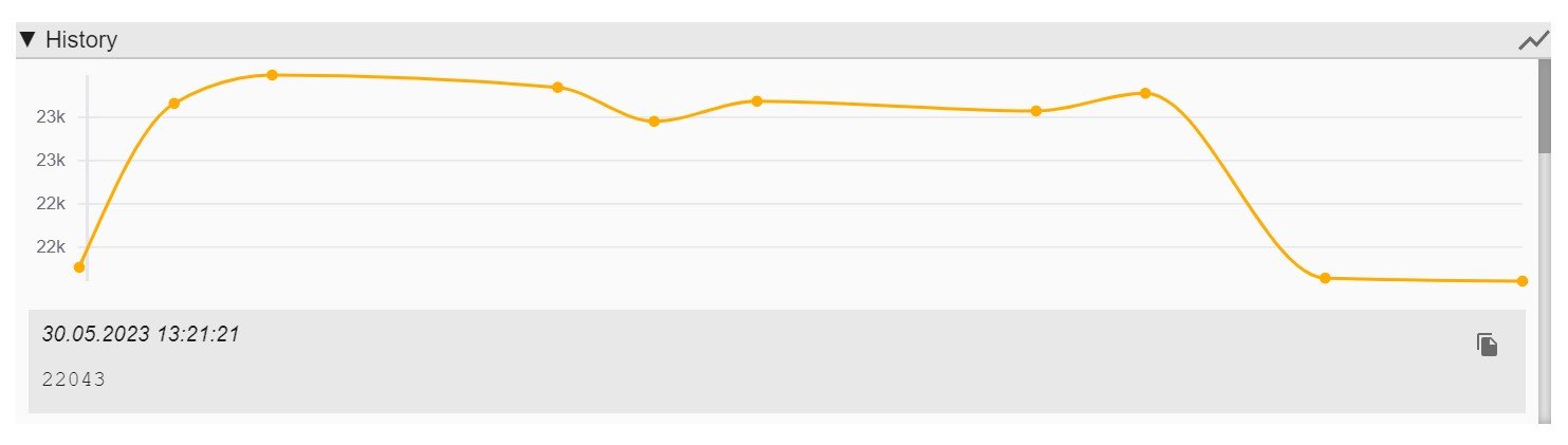 In der Grafik sieht man es besser, jeder Punkt ein neuer Wert. Zwischen Punkt 2 und 3 liegen 1 Minute.