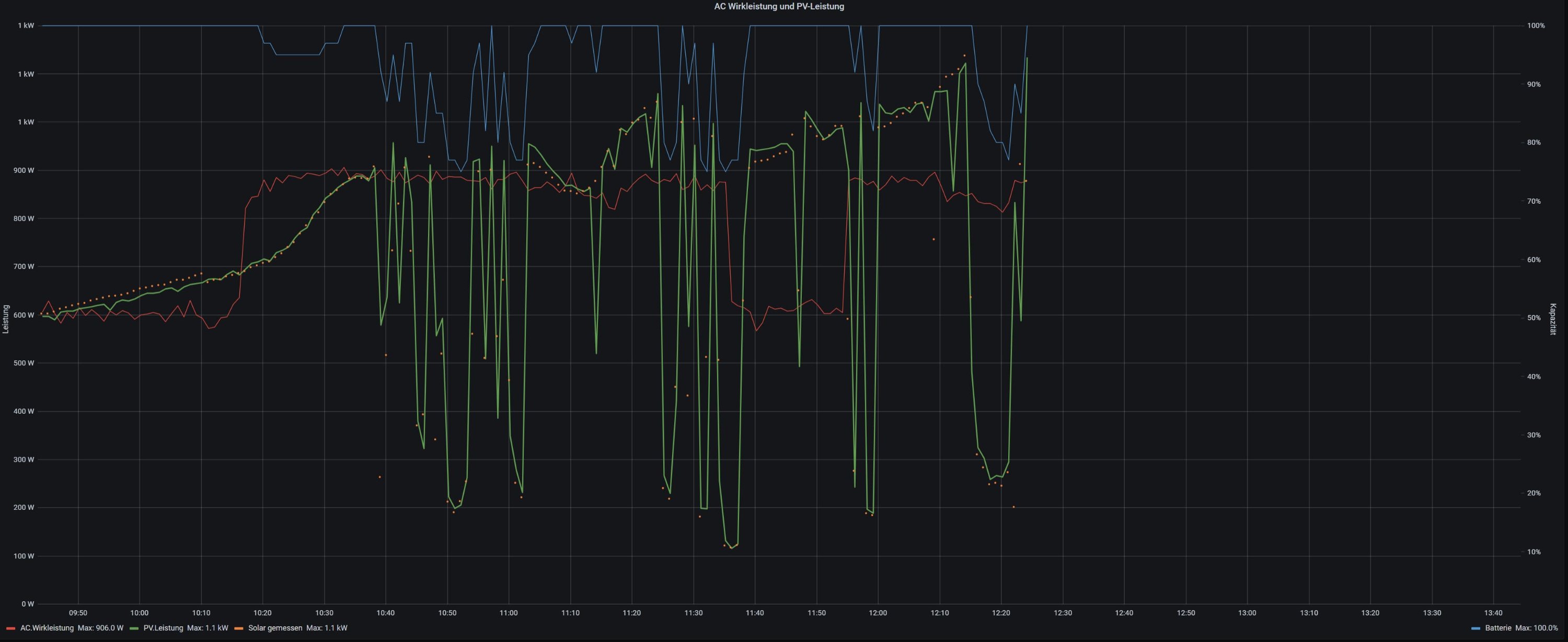 getestet und hatte heute z.b. bei 925W/m² anzeige als Leistung aus dem Wechselrichter 940W bis er auf Batterieleistung ausgleicht im Unteren Bereich bei ca. 250W kam ich etwas höher so auf 300W was aus dem Wechselrichter entnehmbar war. Ich sage mal so auf +/- 50-70W haben die Werte der Wetterstation immer gestimmt.