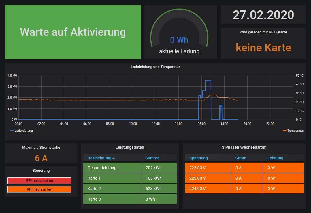 Zuerst die Solaranzeige installieren und die go-eCharger Wallbox konfigurieren. Das Dashboard "go-eCharger" auswählen. Wenn alles läuft sollte die Anzeige so aussehen: