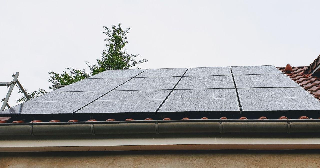 - 32 Halbzellenmodule erzeugen knapp 10 KWp aufgeteilt  in 2 Strings.