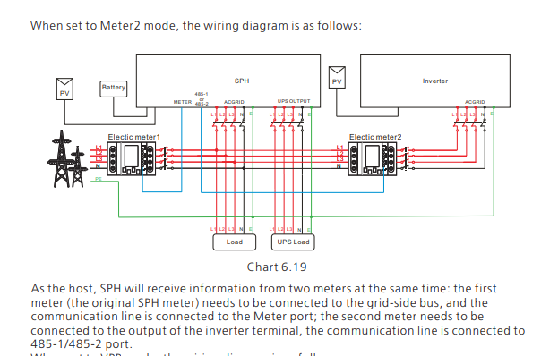 der SPH (4600) braucht gewisse Einstellungen im WR Menü für RS485, ob das jetzt bei den 3phasigen auch so ist, kann ich dir nicht beantworten, weil ich den noch nie verbaut hab. Du hast ZWEI Zähler, völlig off label.Zumal der Punkt unter "Reserviert" auftaucht, was, wenn das den SPH durchnander bringt??