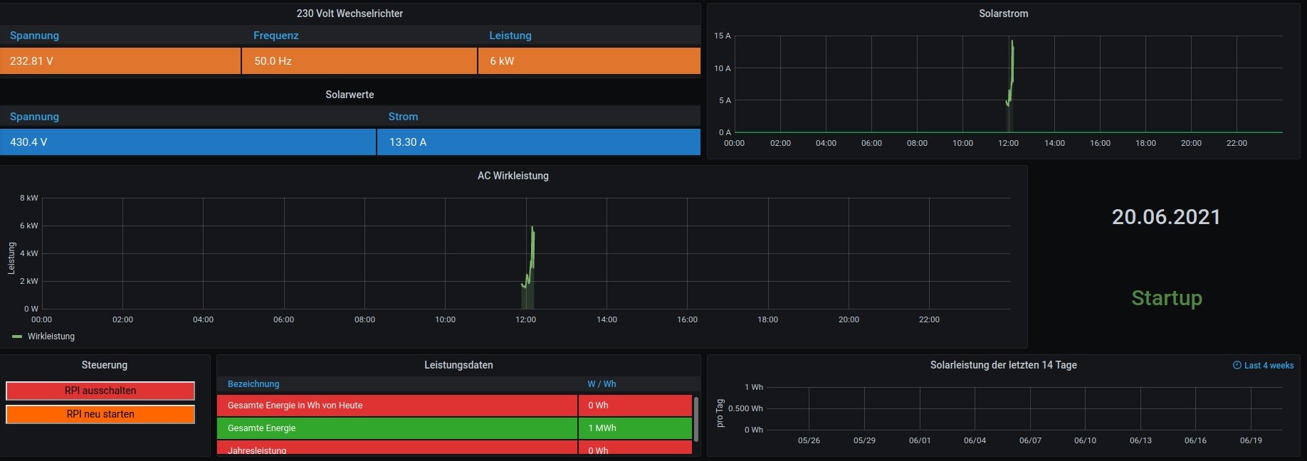 Habe gerade mal die ersten Daten mit dem Raspberry hinbekommen, aber da sehe ich bisher nur AC Wirkleistung und Solarstrom in Ampere. Hätte natürlich auch gerne die BYD-Speicherdaten mit drin - ähnlich wie im Solarweb. Als absoluter Solaranzeige-Newbie weiß ich nicht, wie ich mein Dashboard mit dem von Aikido68 erstellten Script anpasse. Über einen Erklärungslink wäre ich sehr dankbar - per Hand übertragen ist keine Lösung