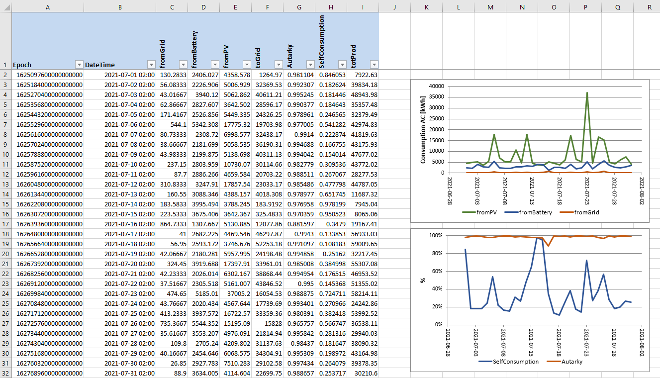 Mit einer kleinen Erweiterung kann man jetzt nicht nur ganze Tables dumpen, sondern auch spezifische SQL queries. Damit kann man z.B. eine monatliche Übersicht erstellen: