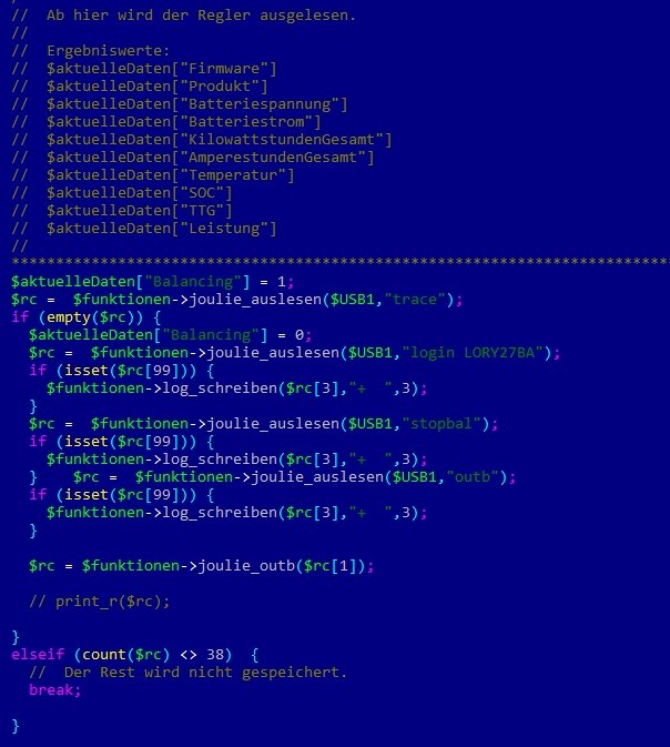 In der Datei joulie_16_bms.php habe ich die Befehle zum Auslesen gefunden. So wie ich das verstehe wird da unter anderem mit OUTB gearbeitet. Das sehe ich auch, wenn ich die Schnittstellendaten anzeigen lasse.