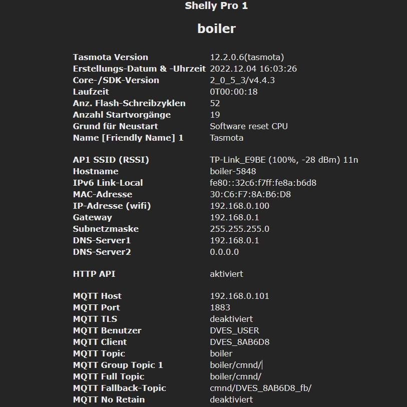 Auf den Shelly Pro 1PM habe ich Tasmota geflasht und ich kann diesen auch über Tasmota schlaten.