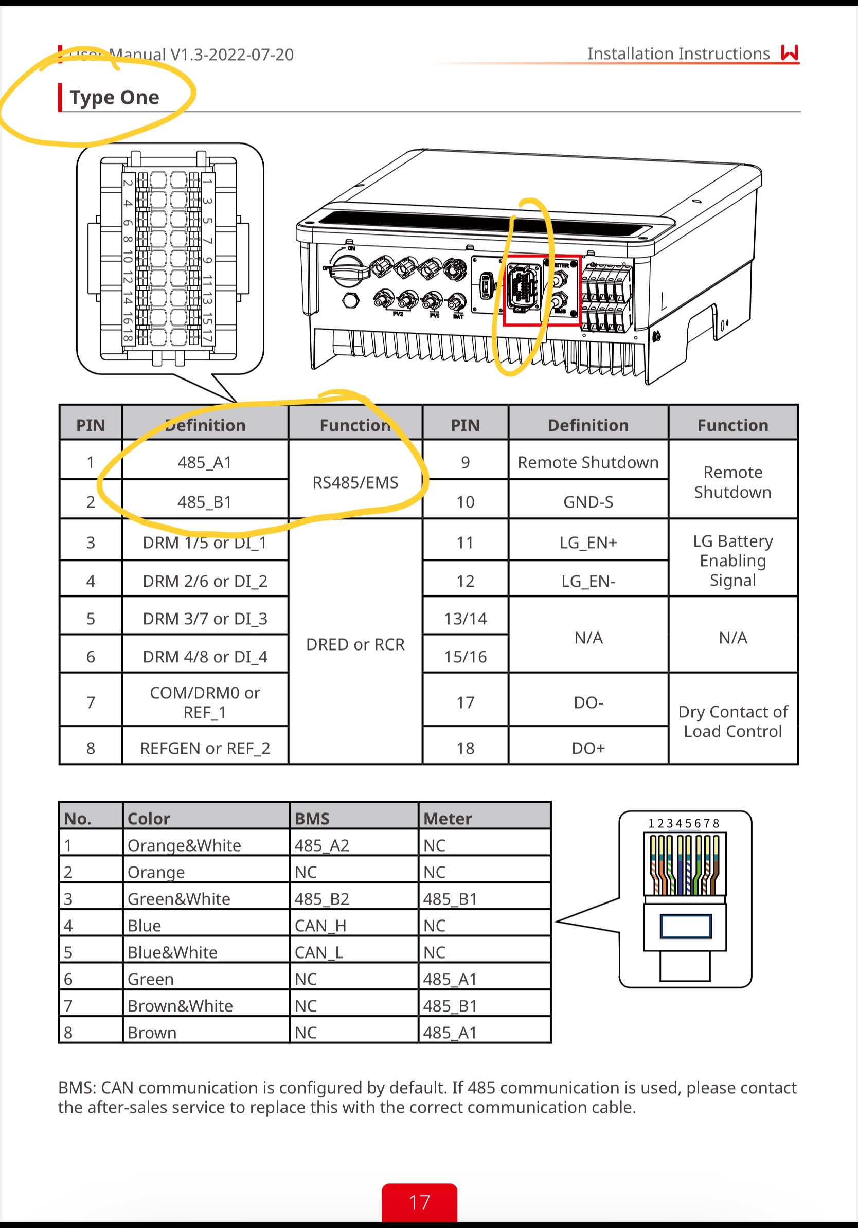 Habe einen GW10K-ET mit einem Type1 Communication Port (siehe Bild in Anlage) und versuche eine RS-485 Verbindung für die Solaranzeige über einen WitMotion USB-zu-RS485-Modbus-RTU-UART-Konverterkabel mit CH340-Chip (siehe Bild in Anlage) herzustellen. Habe Pin1 und Pin2 des Communication Ports mit den mittleren Anschlüssen des WitMotion Konverterkabel verbunden, bei den Einstellungen in SetUp der Solaranzeige habe ich