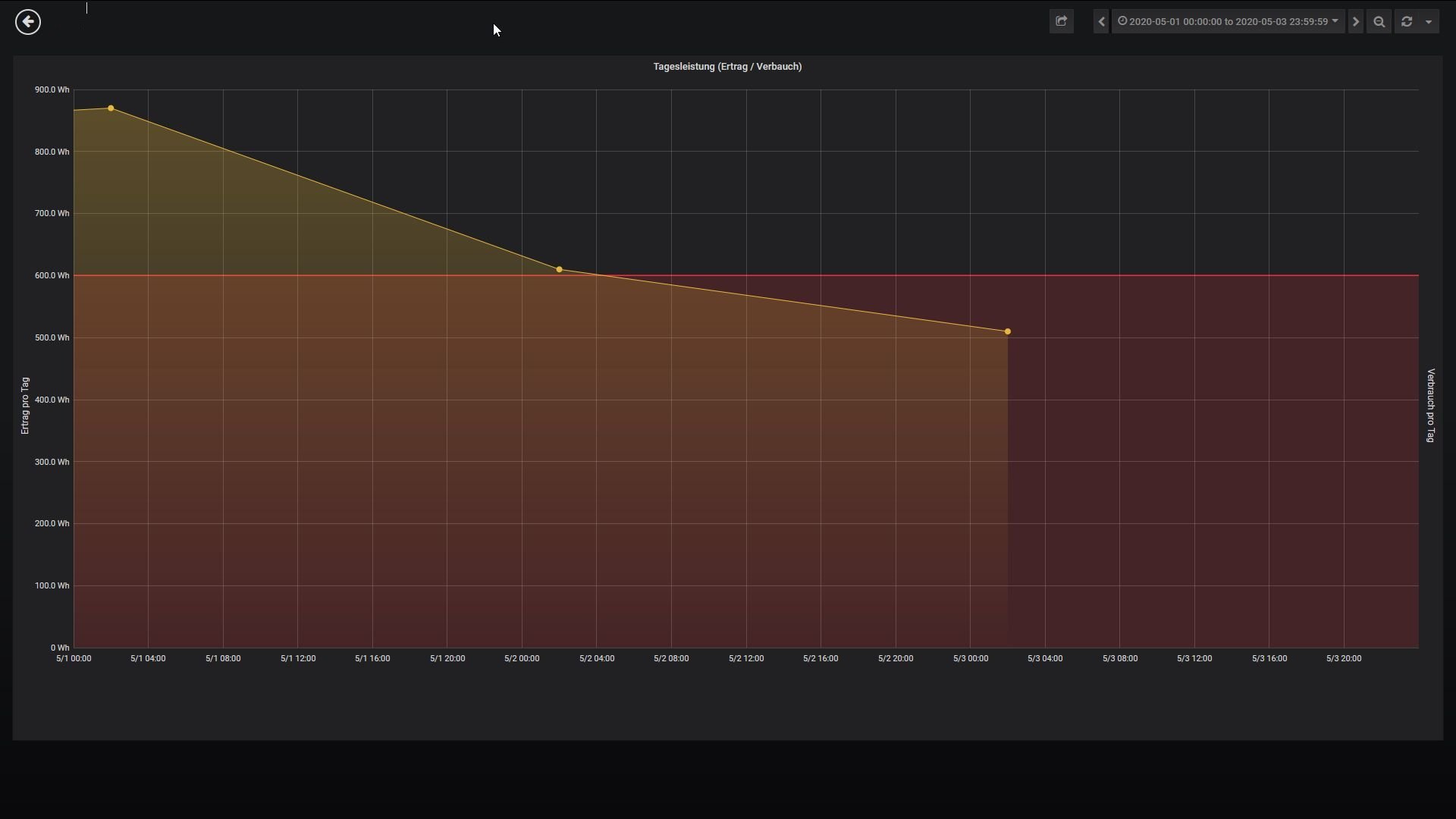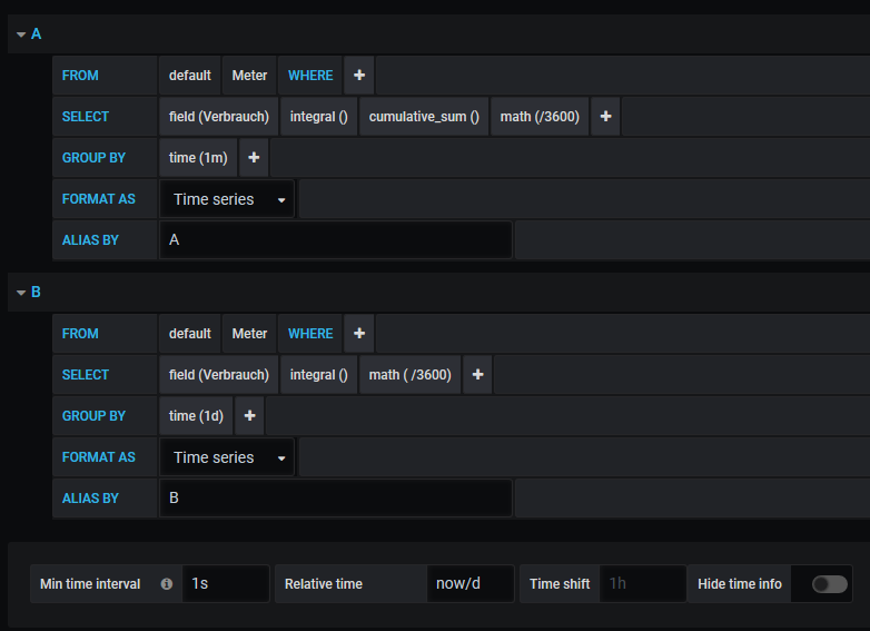 Das Problem tritt aber auf, wenn man Daten über 1 Tag gruppiert (Group By time(1d)) da ich mir die Energie der letzten Tage anzeigen lassen will.