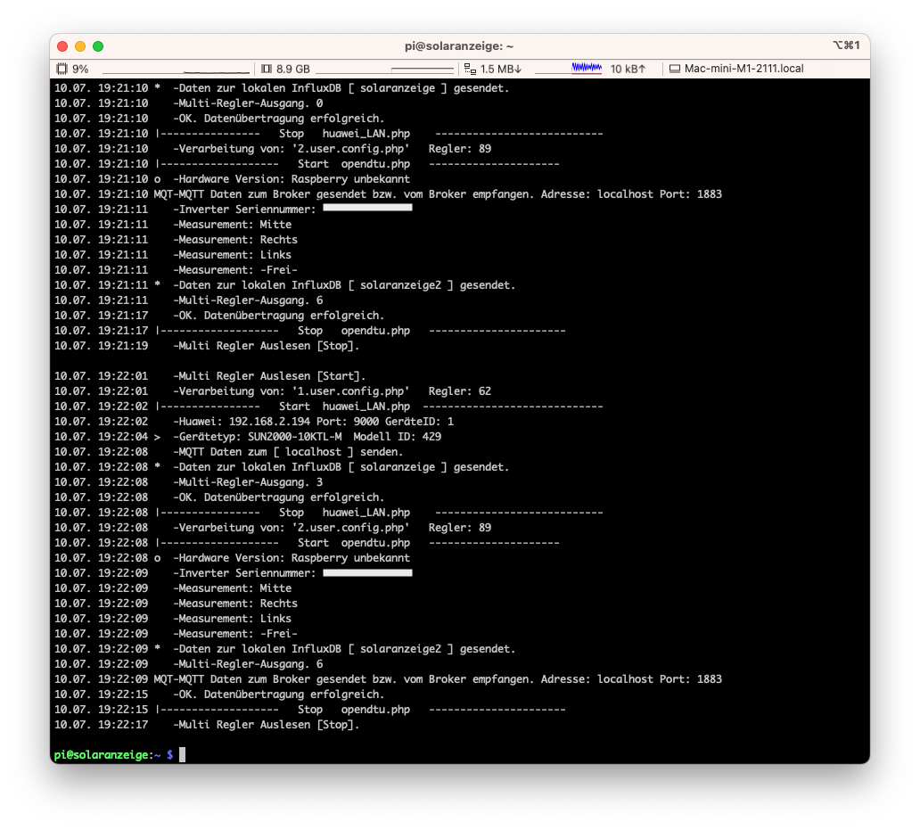 Setup:Wechselrichter Huawei SUN2000-10KTL-M1, sDongle mit LAN, Modbus Proxy auf dem gleichen Pi wie Solaranzeige (auf einem anderen Raspberry läuft EVCC). Darüber hinaus verwende ich auch eine Multi-Regler-Version mit OpenDTU und Hoymiles WR. Solaranzeige 32-Bit Version 5.1.0b.