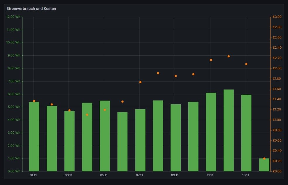 So kann der Verbrauch pro Tag und die Kosten pro Tag dargestellt werden: