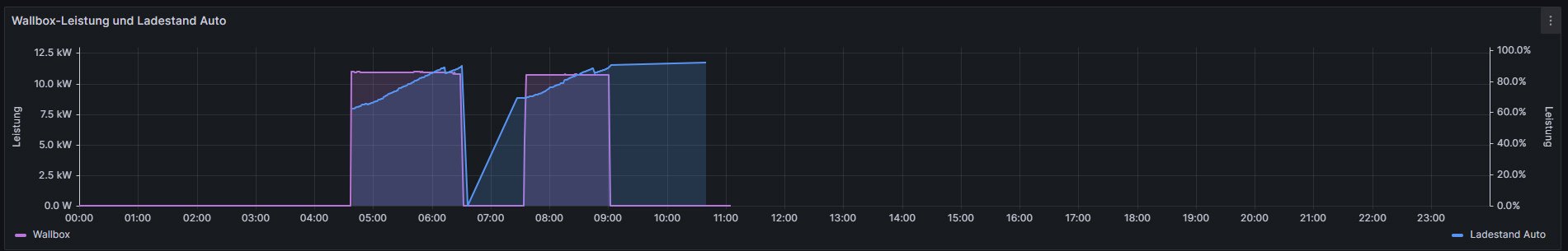 Hi, vielen Dank. Eine gute Übergangslösung zur Visualisierung. Werde es versuchen. Hoffe trotzdem, dass der scharger noch eingebunden wird um alle Wallboxfeatures nutzen zu können. Ich möchte z. B. nicht, dass der Akku vom Auto leer gesaugt wird.