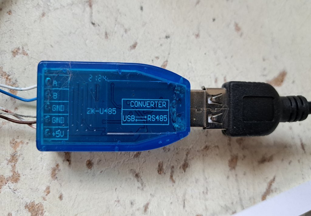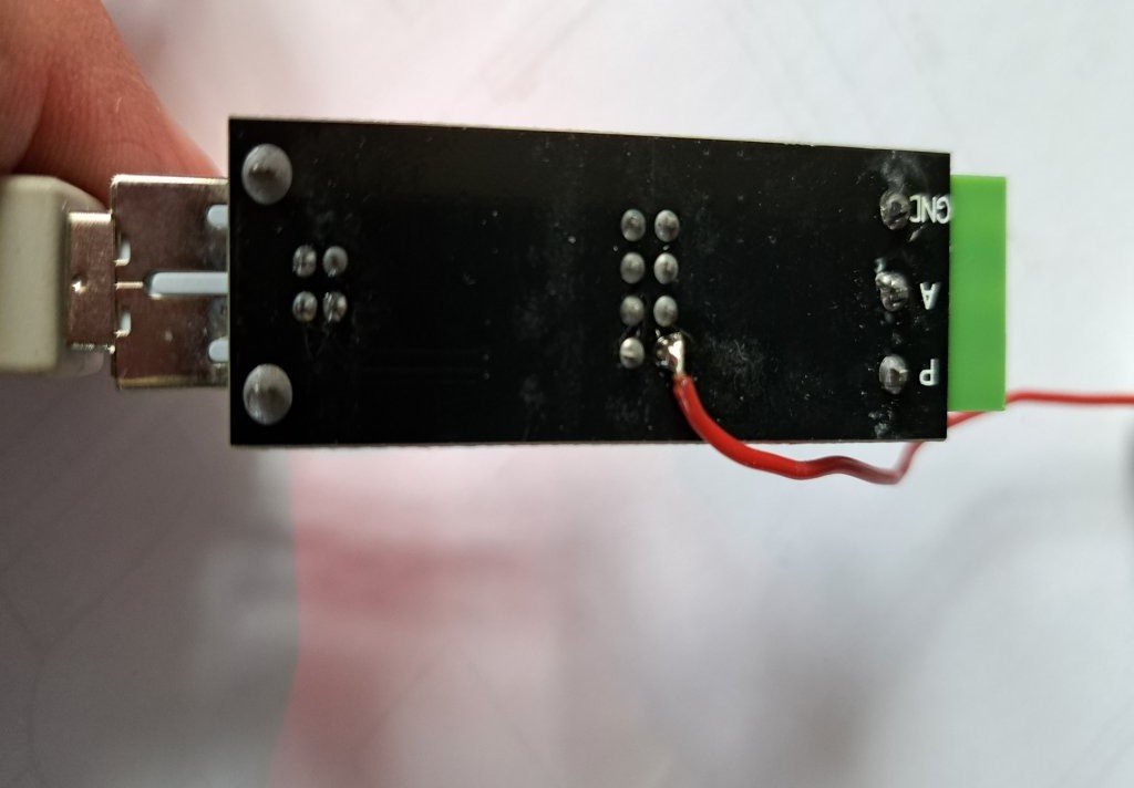 Es müssen aber einige Änderungen vorgenommen werden. So sollte umbedingr (auch bei Orig.Adapter) im Modul sollte ein Abschluss Widerstand (220 OHM) für die A-B Leitung eingebaut werden da sonst die Verbindung mit nur wenigen cm Kabellängen funktioniert. Bei den Orig. USB-Adapter kommt außerdem 5 Volt zur Versorgung der Schnittstelle vom PZEM-Modul heraus. Dieses habe ich bei "Deinem" Adapter durch anlöten eines Kabels gelöst !
