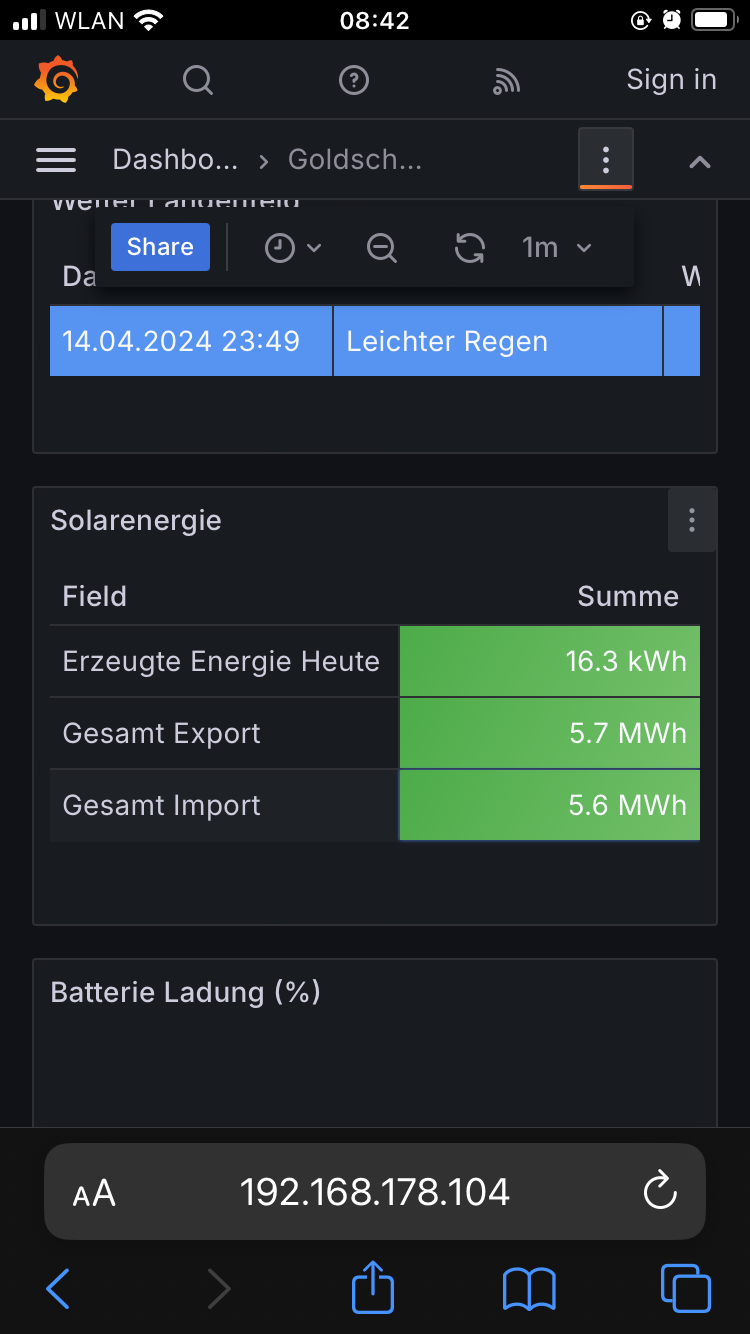 Ich denke das ist oben dargestellt, die Abfrage ist per ModBUS TCP per LAN.andreas_n hat geschrieben: ↑So 14. Apr 2024, 17:25Au weia...
