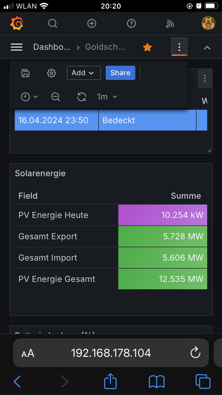 Ich bin neu hier und hab gerade mit der Solaranzeige gestartet, ich stelle die Fragen weil ich keine Antworten in den Doks gefunden habe und hoffe das andere die gleichen Problem ggf. schon gelöst haben.