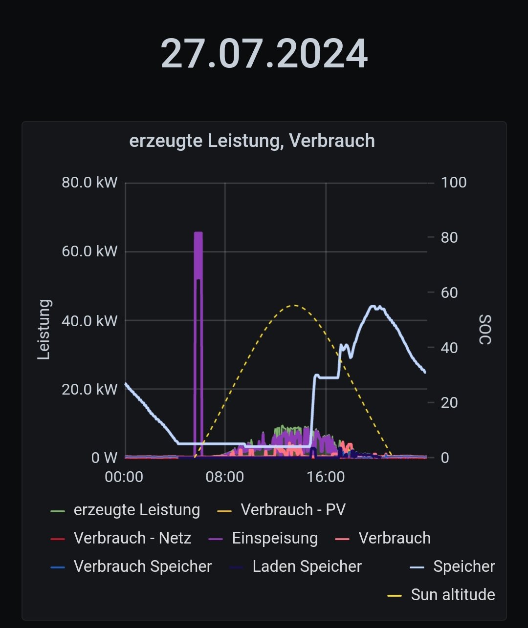Ich habe jetzt in meiner Solaranzeige den Fehler, dass wenn der Speicher leer ist (5% Rest) mir eine Einspeisung von teilweise über 80 kW angezeigt wird.