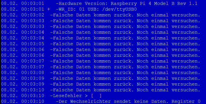Hast du den Raspberry neu gestartet, nachdem der Wechselrichter neu gestartet wurde? Das muss sein, damit die serielle Verbindung wieder richtig eingestellt wird.