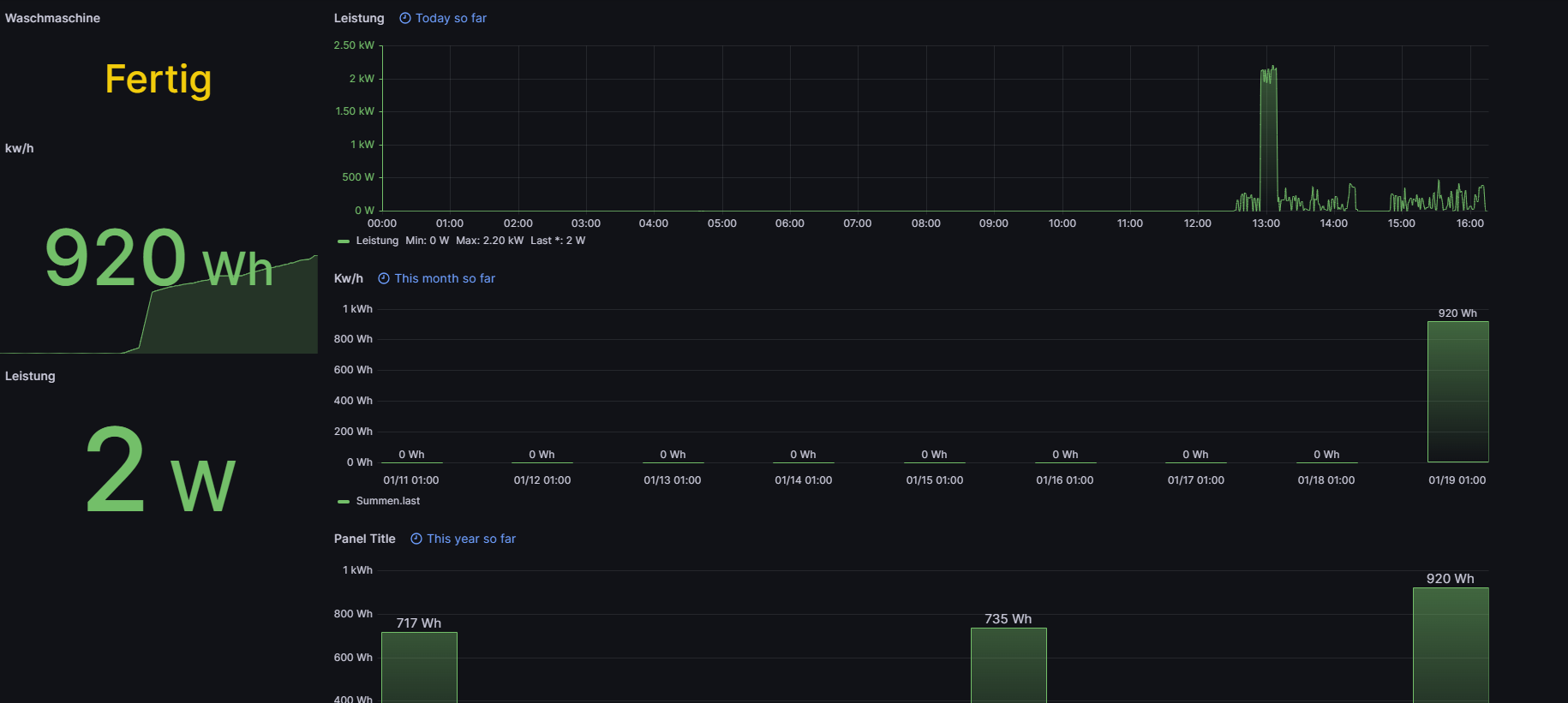Waschmashine ist eine Gorjenie . Das wäre das Dashboard dazu, ich möchte noch einen Temperatursensor dazu machen um auch mal die Wirkliche Temperatur der Wama zu ermitteln.