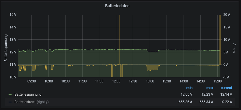 das könnte an deinem Epever Tracer liegen. Ich habe einen Tracer2210 und habe die selben Spikes in der Datenbank. Ist halt ein China-Produkt.