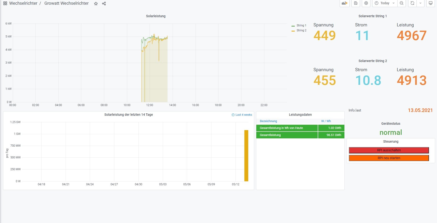 Ich glaube nicht, das die da was rausrücken - die wollen ja ihr überteuertes Eastron-Smartmeter oder ihre Webboxen verkaufen.solarfanenrico hat geschrieben: ↑Do 13. Mai 2021, 09:35Deine Versuche mit dem Smartmeter mußt Du sicher mit der Growatt-Service-Hotline klären.