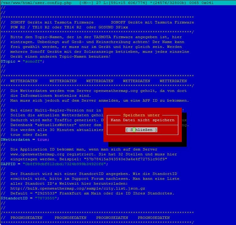 Nach Eingabe der Daten kann ich nicht speichern. Muß ich dazu eine neue Adresse statt /var/www/html/user.config.php angeben?