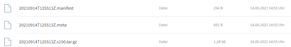 Wie sieht der backup-Befehl aus, und wie ist die Verzeichnisstruktur über den 3 Dateien aus Deinem Bild ?