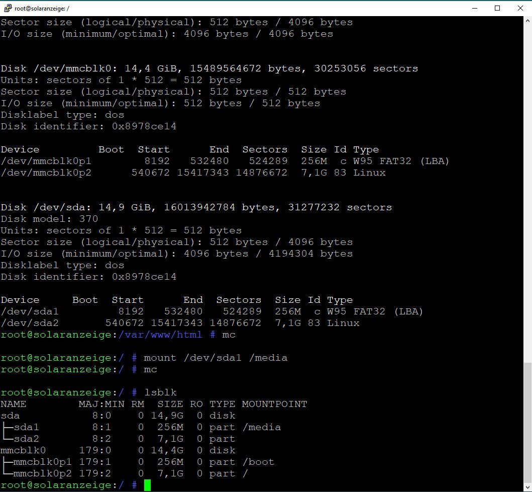 ich versuche gerade, die Solaranzeige auf einer SSD zu installieren.