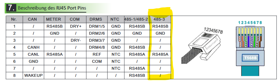 Growatt hat eine vom Standard abweichende Belegung der PINs. Daher hat bei mir kein Standardkabel funktioniert.