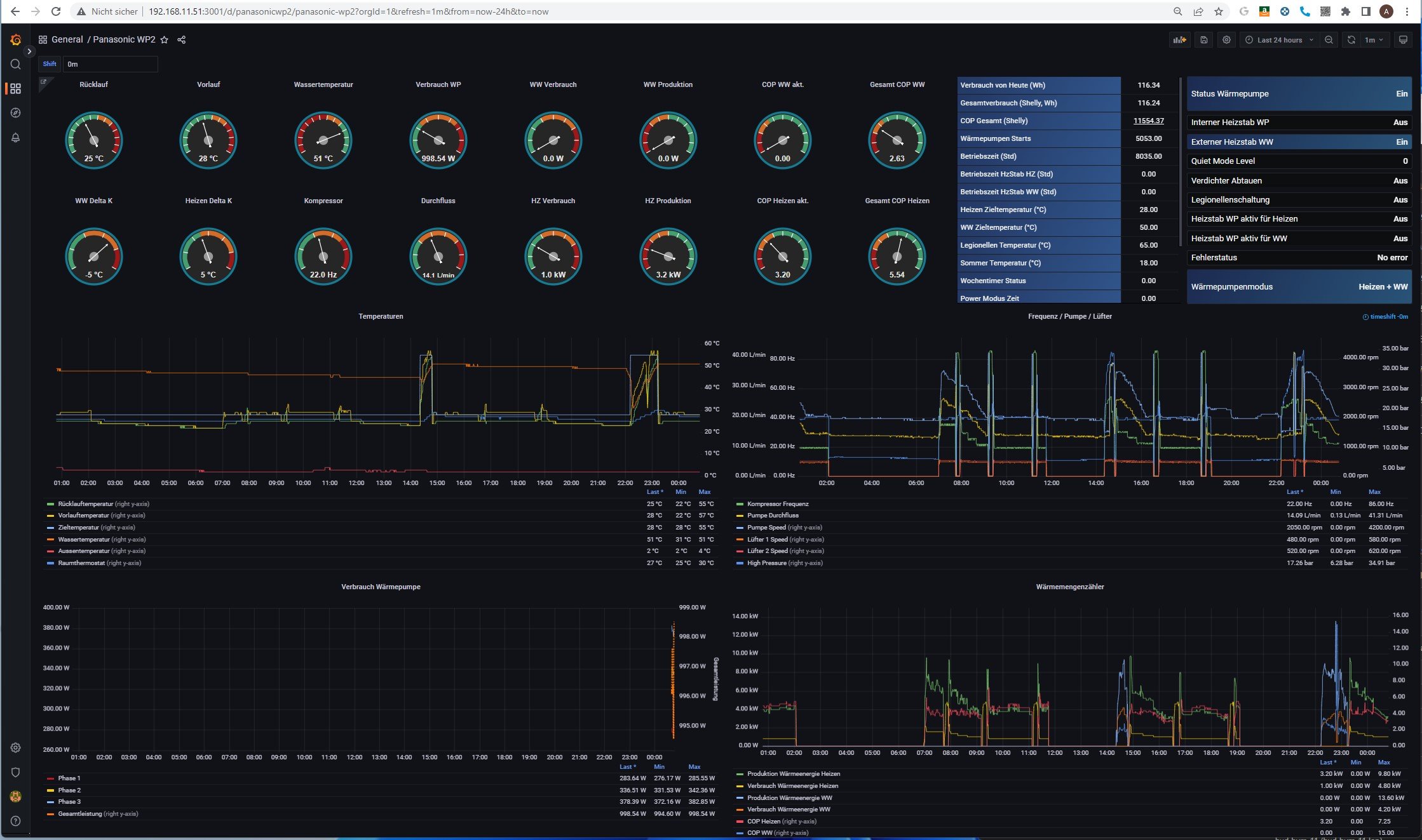 Beim COP Shelly musst Du noch nachsteuern, der rechnet wohl die bisherige Erzeugung zu der gemessenen Leistung, aber den Shelly gibt's natürlich erst ein paar Minuten. Hier einmalig in die Datenbank den bisherigen (geschätzten) Verbrauch addieren (oder einfach im Dashboard im Select als zusätzliche Konstante Addieren).