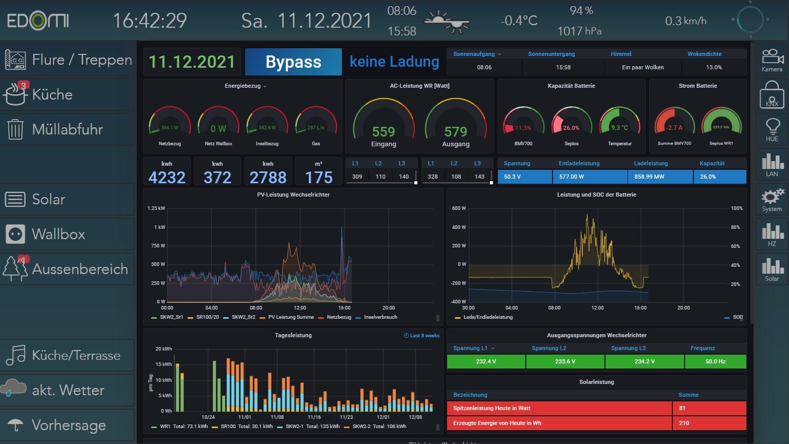 - ist eine Netzgekoppelte Insel. Mein Ziel ist es, meinen Netzbezug (jährlich ca. 4500kWh) nicht weiter ansteigen zu lassen und das obwohl ich ab September jetzt komplett zu hause lade. Ich werde für mein Auto ca. 4000kWh benötigen, da ich pro Tag 110 - 120 km fahre.