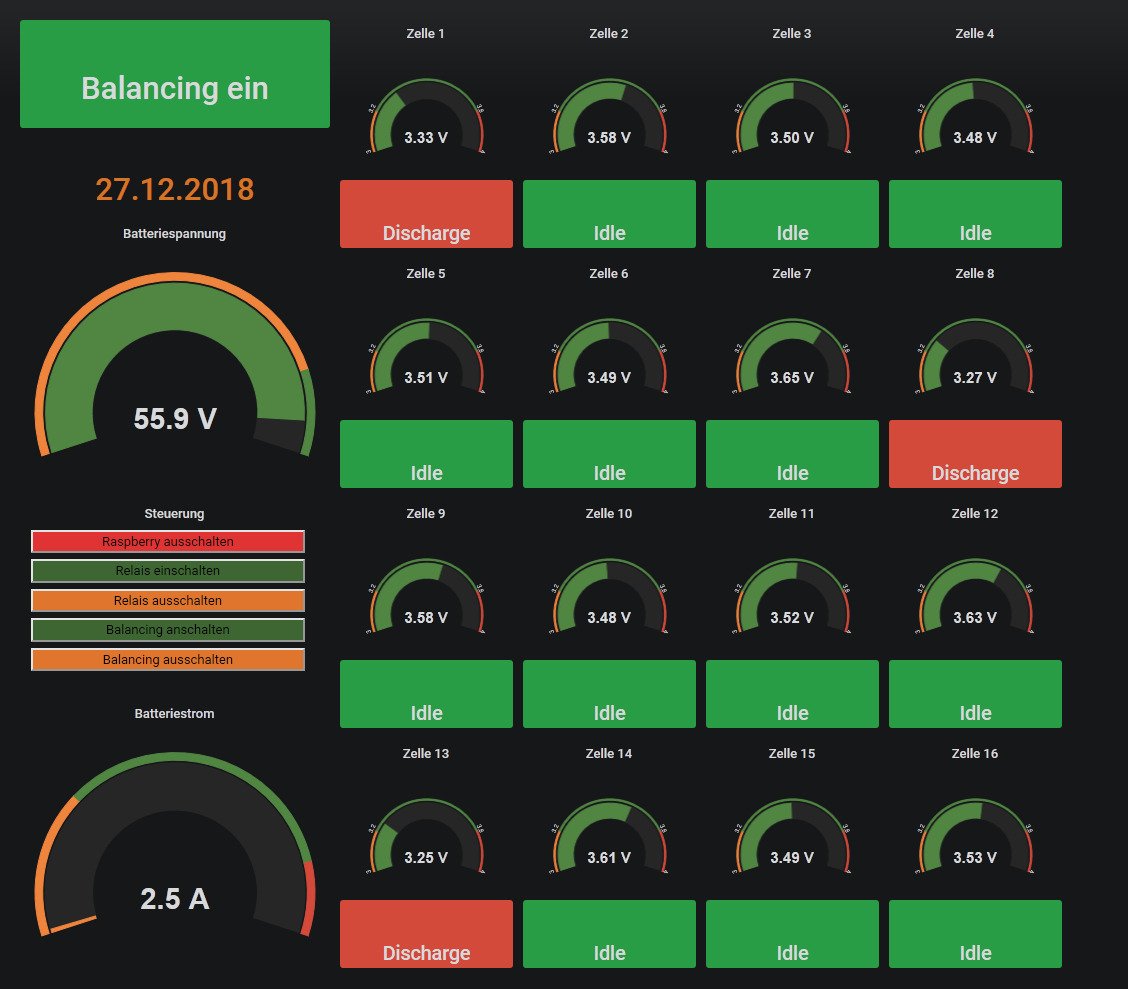 Das "Aktive Cell Balancing" Batteriemanagemantsystem von AutarcTech wird mittels USB Kabel angeschlossen. Man kann sowohl das Relais und das auto Balancing steuern. Benötigt wird das Image ab Version 4.2.4