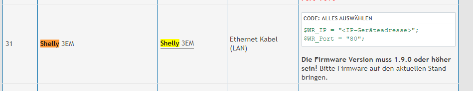 ich bin ganz neu hier. Möchte gerne einen SMA-Wechselrichter und Shelly 3EM über Raspberry mit Solaranzeige betreiben. Hardware habe ich alles soweit. Erste Stolperstelle beim Einlesen und vorbereiten: Laut der Tabelle der unterstützen Geräte hier im Forum muss der Shelly 3EM über Ethernet verbunden werden. Dieser hat doch aber gar keinen Ethernet-Anschluss. Kann mich hier jemand aufklären?