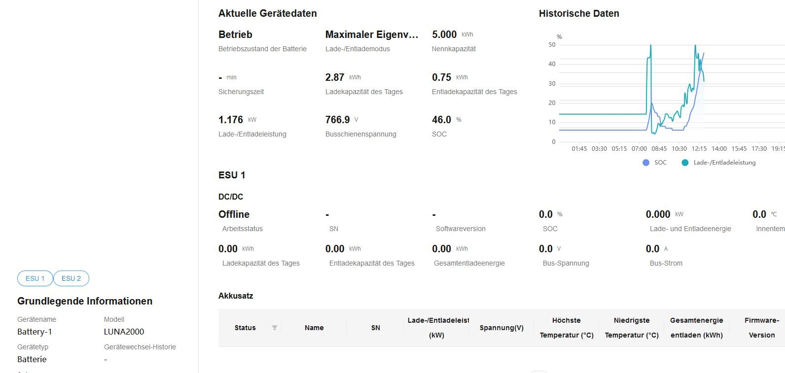 HUAWEI LUNA2000: Nach Austausch keine SOC- und (Ent-)Ladedaten