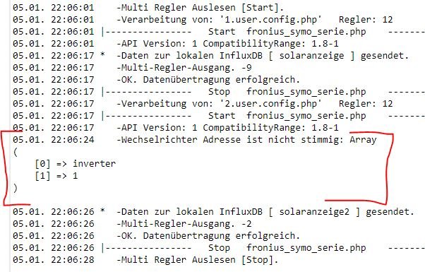 erhalte ich die Meldung: "Wechselrichter Adresse ist nicht stimmig: Array ...." (siehe attachment)
