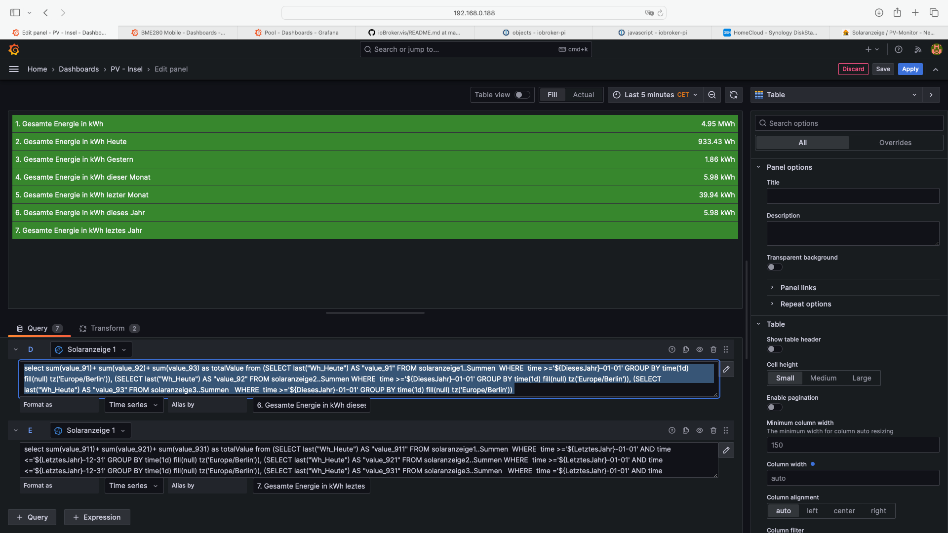 [...] solaranzeige3..Summen WHERE time>='${LetztesJahr}-01-01' AND time <='${LetztesJahr}-12-31' GROUP BY time(1d) fill(null) tz('Europe/Berlin'))