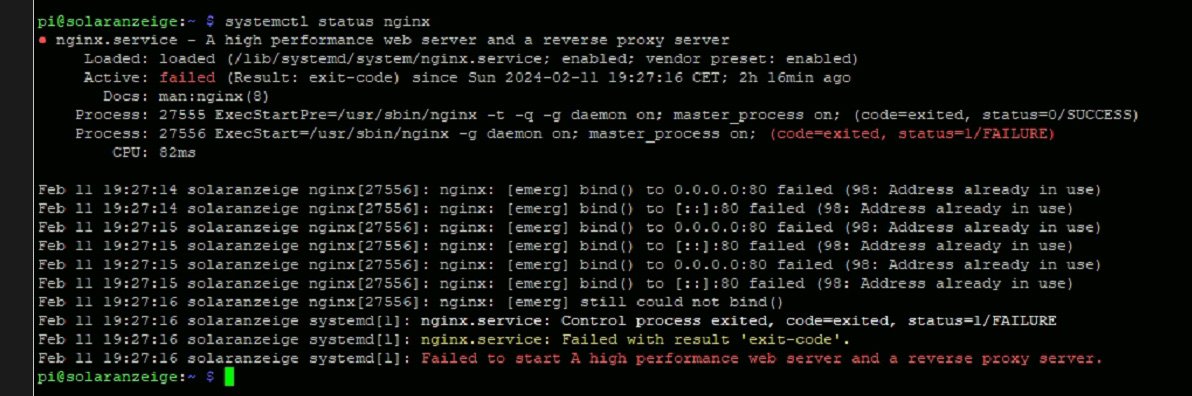 Kurzum: Die Solaranzeige ist installiert, über die lokale IP kann ich auf das Dashboard zugreifen. Grafana Version 1.3