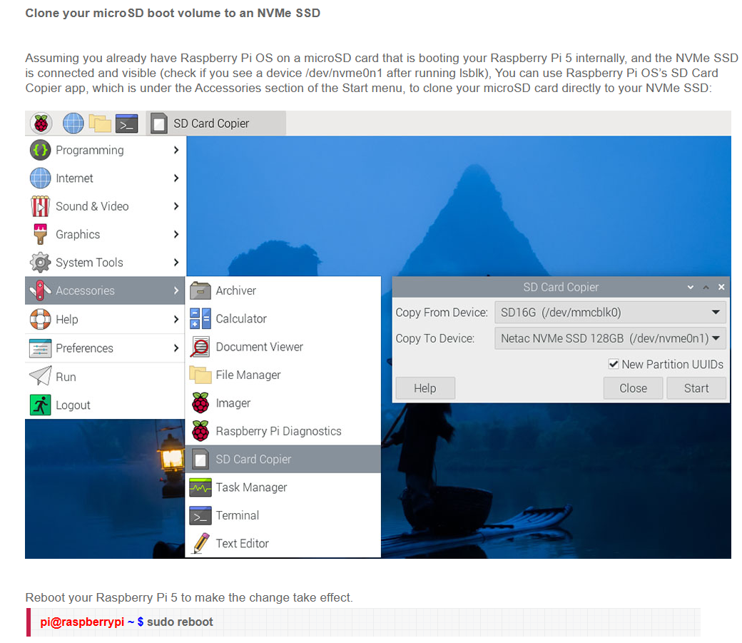 meine Installation "läuft" jetzt so weit, dass ich die Testumgebung auf eine 256 GB SSD, welche am PI5 angeschlossen wird kopieren möchte und von dort aus laufen lassen will.