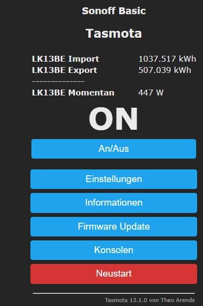 Mein Tasmota Lesekopf habe ich installiert, konfiguriert und sehe die Daten zumindest im Browser.