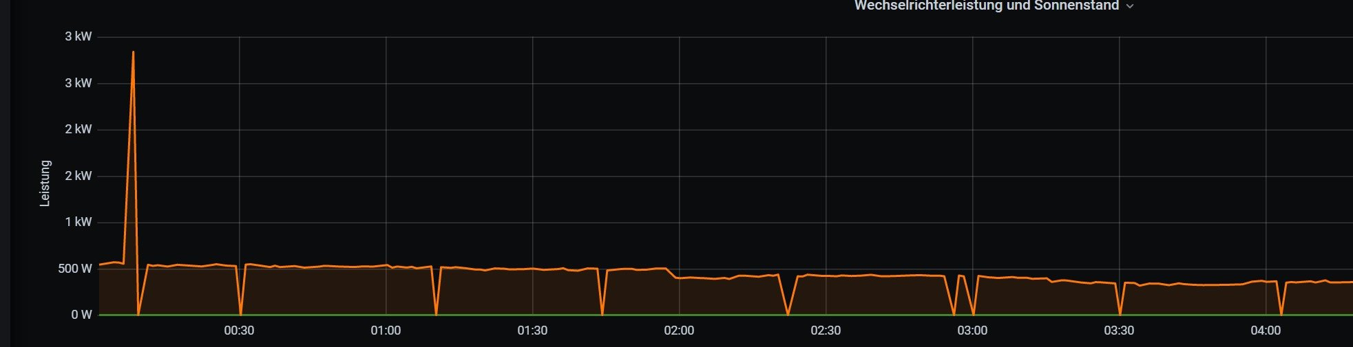 Die Dauer der Unterbrechungen sind immer ca. 2 Minuten. Ich finde das schon irgendwie doof und würde das sehr gerne abstellen. Ein Update der Solaranzeige hatte ich bereits gemacht, direkt danach sah es auch erst mal so aus als ob das Problem weg wäre, kam dann aber etwas später wieder. Was auch noch etwas nervt ist, dass ich immer wieder aus Grafana rausgeworfen werde und mich wieder neu anmelden muss. Das war vorher eigentlich nie der Fall.