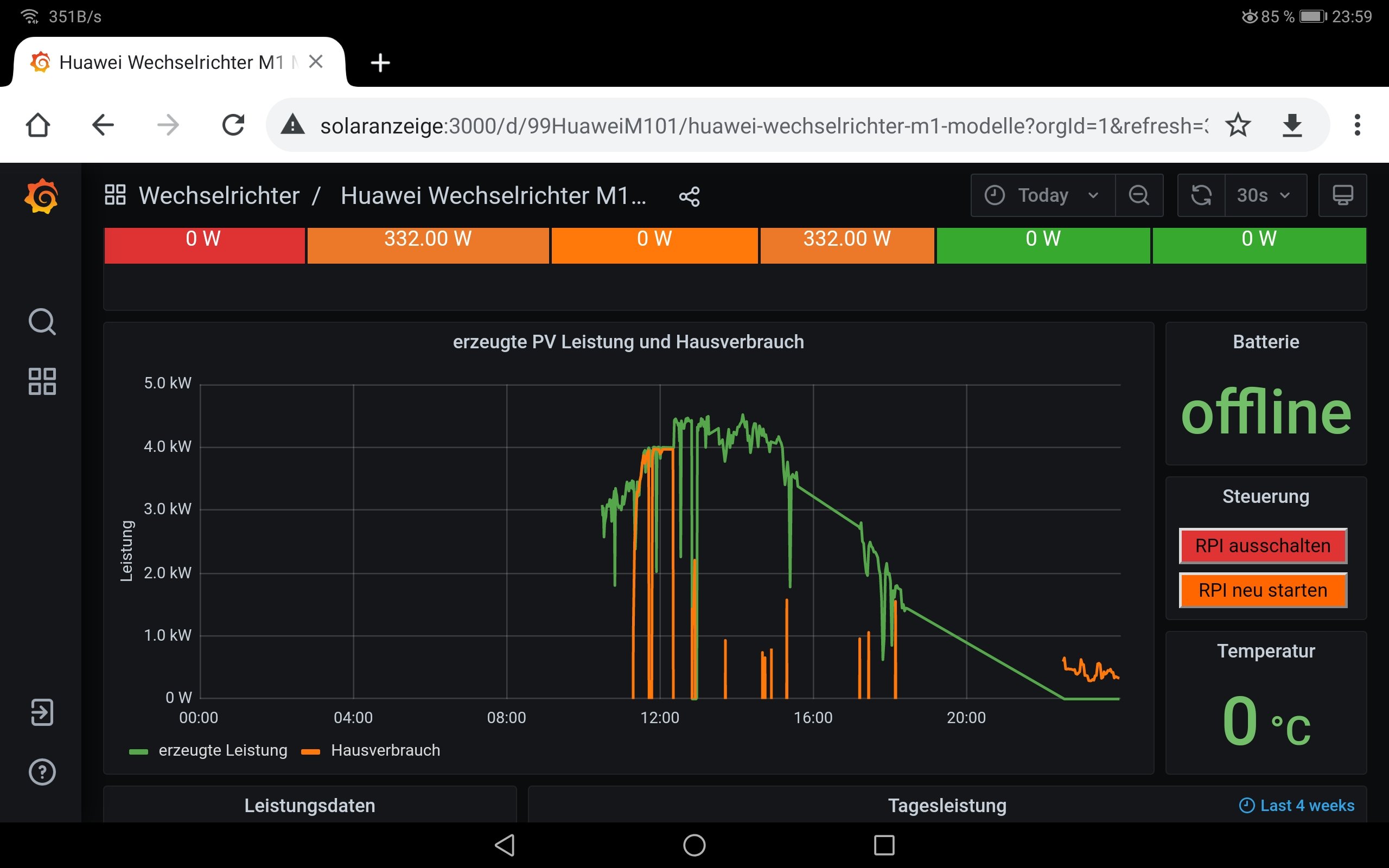 Benutze ich die Solaranzeige nur für den 5KTL-M1 ( der ist Master), dann bekomme ich den Hausverbrauch in Orange nur angezeigt, wenn der 17KTL-M0 aus ist ( als keine Sonne- Standby) . Warum "blockiert" der die Power Sensor Abfrage am 5KTL-M1?
