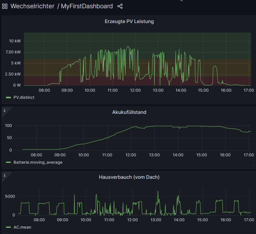 Man sieht ab Umstellungszeitpunkt (ca. 14:00) im Diagramm der PV Leistung (PV/Leistung) noch immer drops; Bei Akkuladestand / Hausverbrauch (AC/Hausverbrauch) aber nichts mehr. Ich werde es beobachten (und mal öfter ein Update machen ... ist simpel (>sudo update))