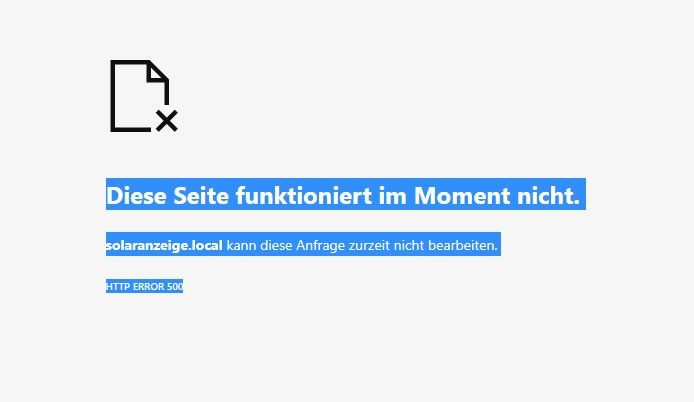 im Edge und Chrome die Meldung das solaranzeige.local die Anfrage zur Zeit nicht bearbeiten kann HTTP ERROR 500.