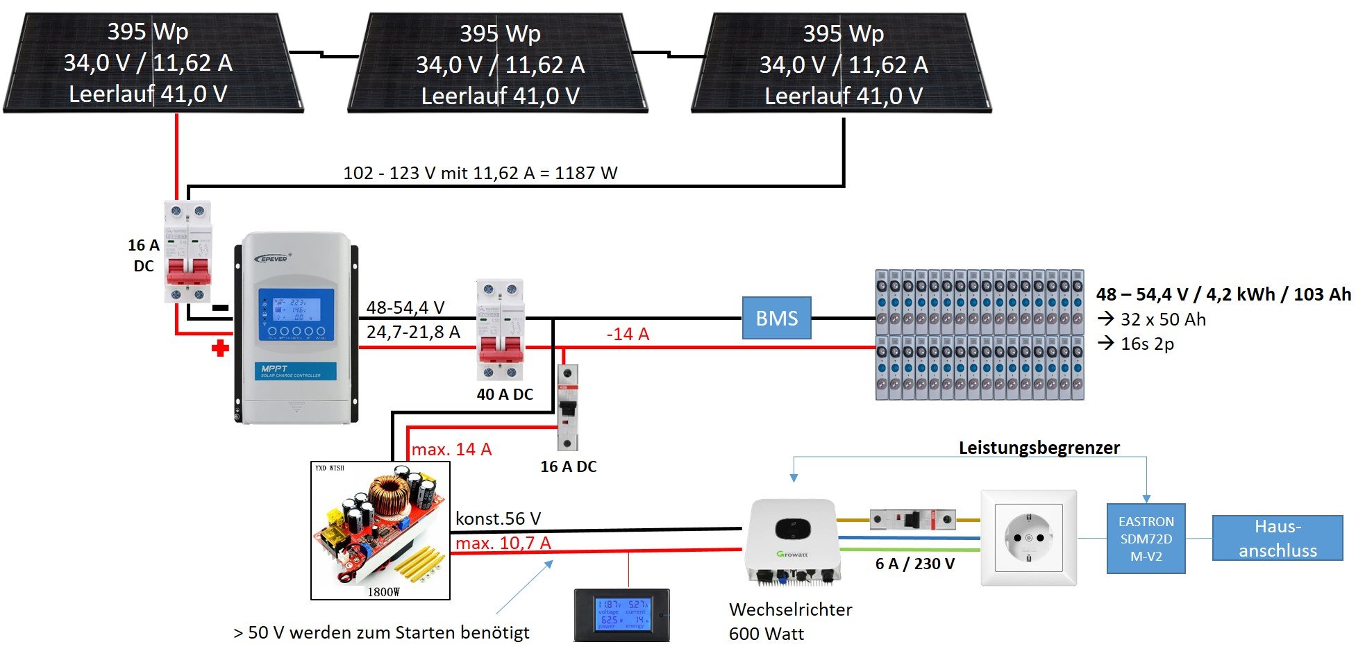 und max. Ausbau bei 4000-5000kWh > PV2400kWp > ca. 6kWh Speicher - jedoch geht hier schon die Autarkie runter, da man in der Regel doch viel mehr Grundlast als die erbrachten 600W (750er Growatt - 660W) benötigt.