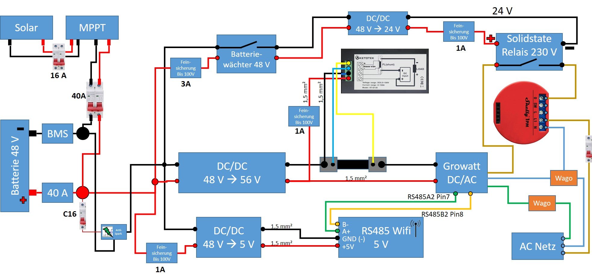 Vom aktuellen Stand passt das ursprüngliche Setup (Projektvorstellung) vom Aufbau her gut, jedoch wird das ganze Projekt schon etwas speziell, denn es verfolgt genau einen Zweck, nämlich die Solaranzeige als eine Mini-PV mit gezielter 0-Einspeisung zu nutzen (wie die großen Anlagen).
