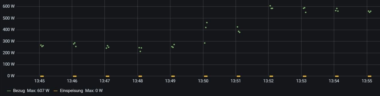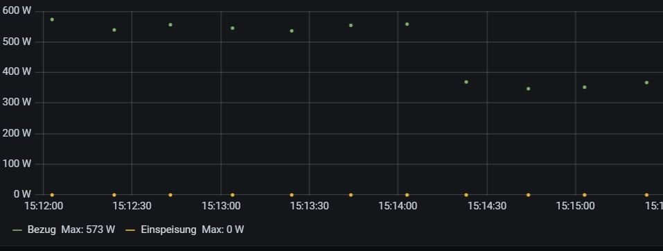 Ich habe gewollt nichts manipuliert. Mein Ziel ist nur, dass die 2 sonoff-Geräte 3mal in der Minute in Grafana als Datenpunkte angezeigt werden.