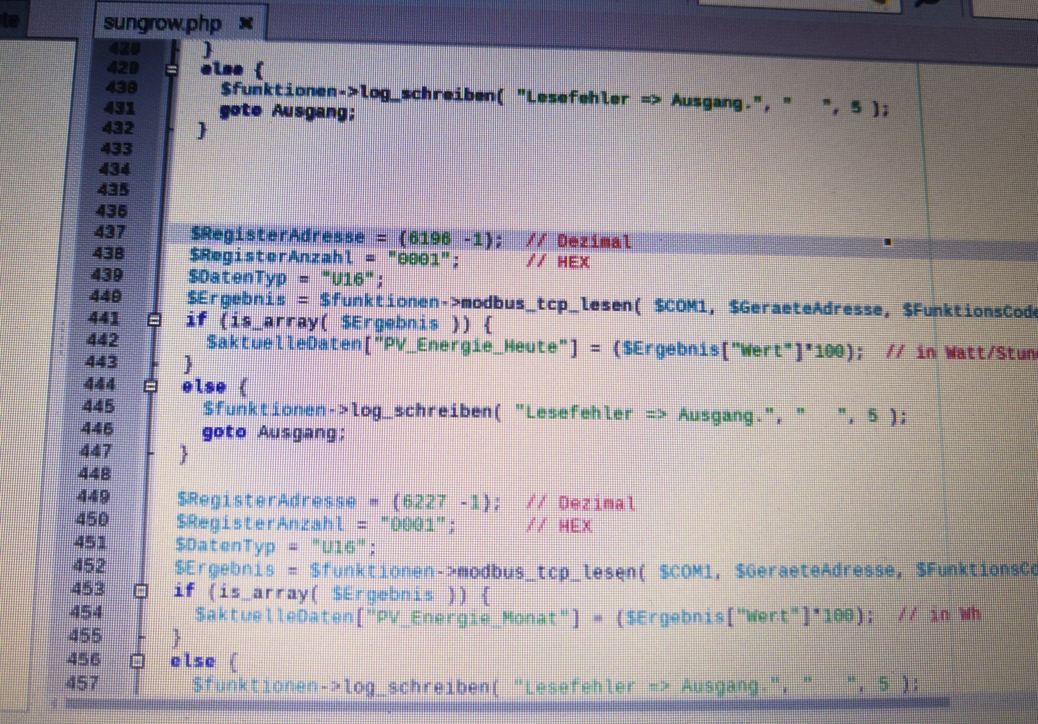 Könnte man den Code in Zeile 437 der sungrow.php nicht hinsichtlich der auszulesenden Registeradresse so variabel gestalten, dass sie um den jeweiligen Tag hochaddiert?