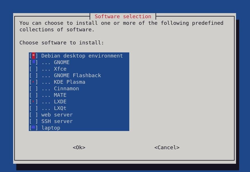 Einen anderen Desktop kann man mit dem Programm "tasksel" auf der Konsole installieren.
