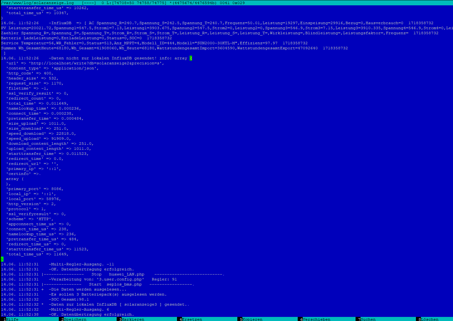 ich hab den wert geändert und jetzt kommen wieder daten, aber der Log schaut noch etwas anders aus