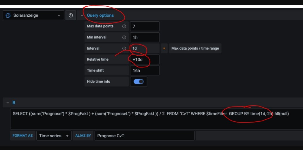 Ok, habe ich vielleicht nicht deutlich geschrieben, diese Variable muss als Dashboard-Variable definiert werden, ist im hier erhältlichen Dashboard nicht enthalten. Damit kann ich etwas leichter nachsteuern, muss nicht gleich alle Stundenfaktoren einzeln ändern...Bogeyof hat geschrieben: ↑Mi 12. Aug 2020, 22:48Prognose.png