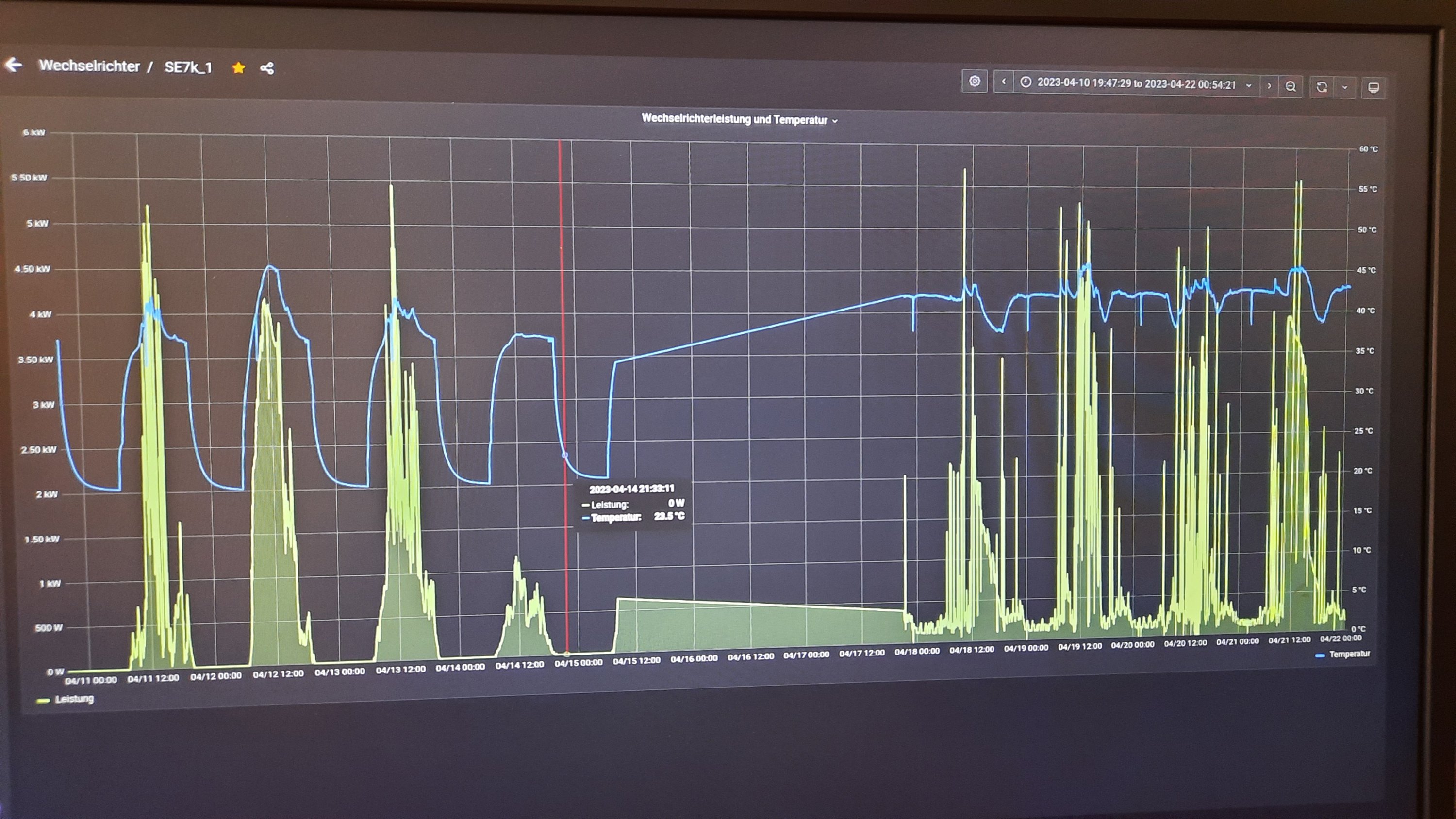 Der vorh. WR, ein Solaredge SE7K wurde am 16.04. ausgetauscht gegen einen SE7K für Betrieb mit Akku (RWS), da ich mir einen Akku zugelegt habe.
